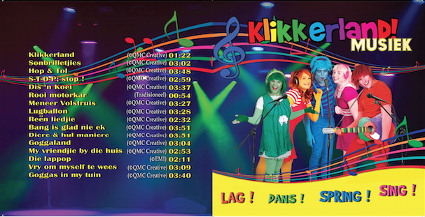 Hierdie vrolike cd is propvol Klikkerland treffers insluitend ‘Sonbrilletjies’, ‘Lugballon’ en ‘Vry om te Wees’!